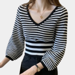 Tijdloze Strepen: Het klassieke gestreepte patroon voegt een verfijnde toets toe, waardoor je het kunt dragen voor elke gelegenheid, van casual uitjes tot ontspannen kantooromgevingen.